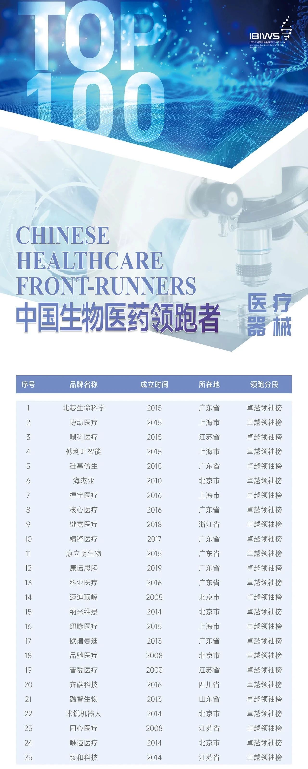 近日,上海市生物醫(yī)藥產(chǎn)業(yè)促進(jìn)中心、普華永道、上??苿?chuàng)集團(tuán)、醫(yī)耘科技、第一財(cái)經(jīng)聯(lián)合開展“2023中國(guó)生物醫(yī)藥領(lǐng)跑者(Front-Runners)100榜單”評(píng)選活動(dòng)落下帷幕。本次論壇的TOP100評(píng)選活動(dòng),旨在向公眾傳達(dá)當(dāng)下生物醫(yī)藥產(chǎn)業(yè)最新現(xiàn)狀與發(fā)展趨勢(shì),從而窺見幾分時(shí)代的脈搏,「海杰亞醫(yī)療」憑借賽道優(yōu)勢(shì)與優(yōu)秀成長(zhǎng)潛力,榮登醫(yī)療器械榜單第6位!
